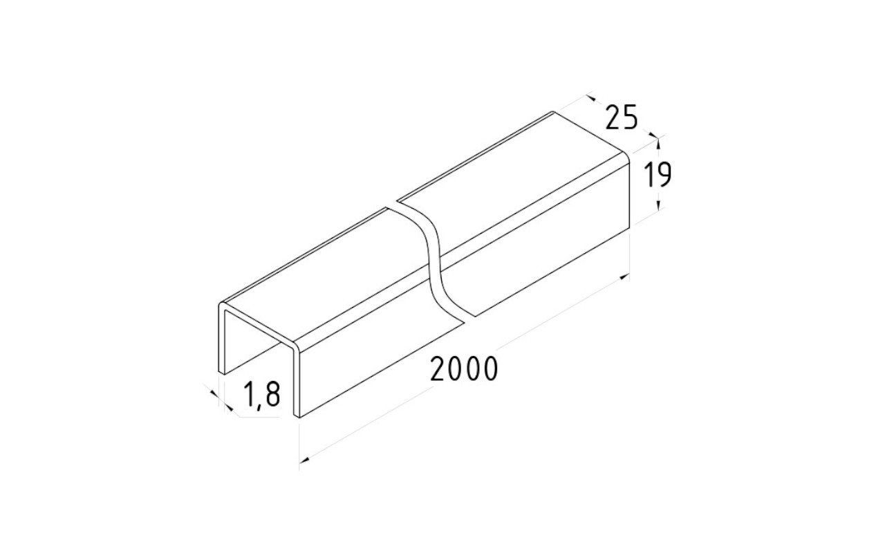 Профиль П-образный t=1,5 мм под стекло 20 мм, полированный, длина 2000 мм, AISI 304 Ф-1149