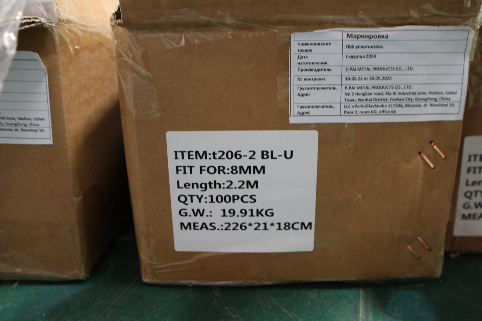 Уплотнитель для стекла 8 мм, блэк ультра - непрозрачный черный, пол-стекло 2200 мм t206-2 BL-U