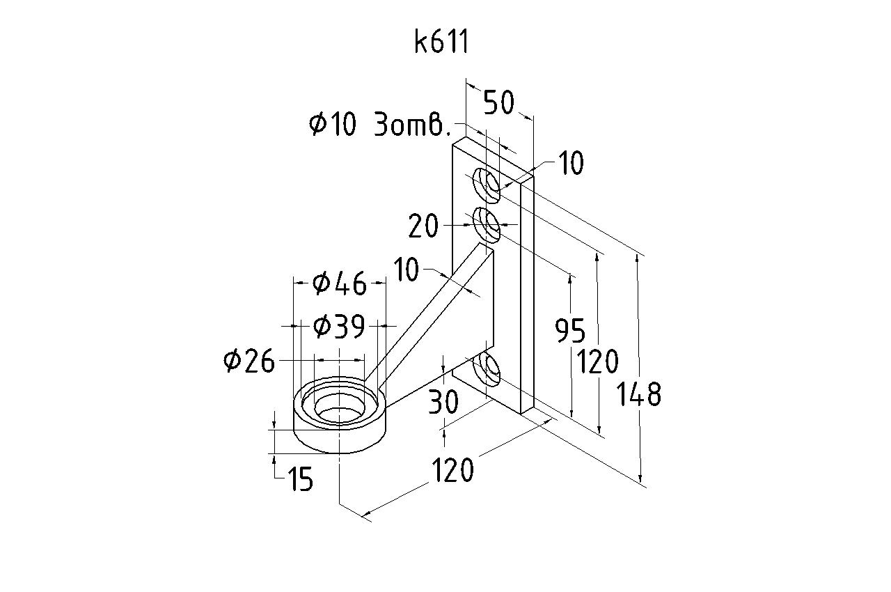 Крепление козырька к стойке алюминиевого фасада, AISI 304, литое , полированное, k611