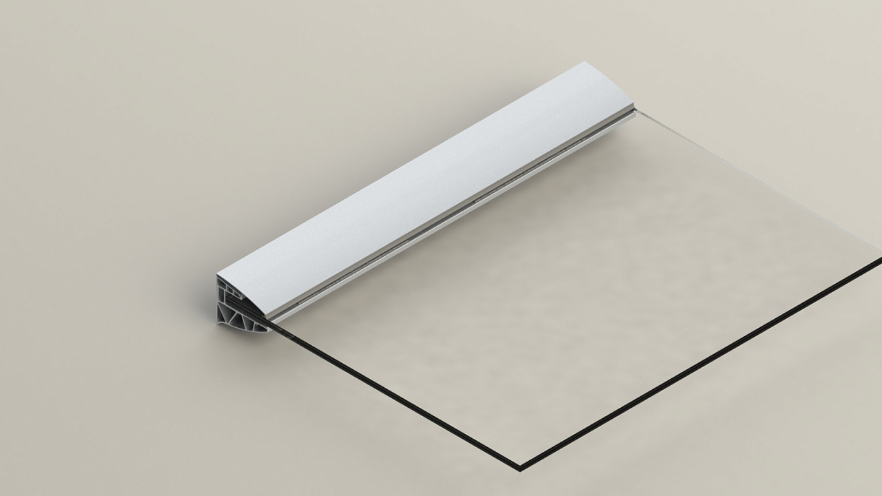 Алюминиевый зажимной профиль для монтажа козырьков без каркаса и стеклодержателей. Профиль крепится к стене и зажимает триплекс козырька.