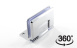 Функция самозакрывание, поворот в обе стороны. Петля стекло-стекло крепится с обеих сторон на стеклянные поверхности, плотно прижимаясь к ним своими металлическими зажимами.