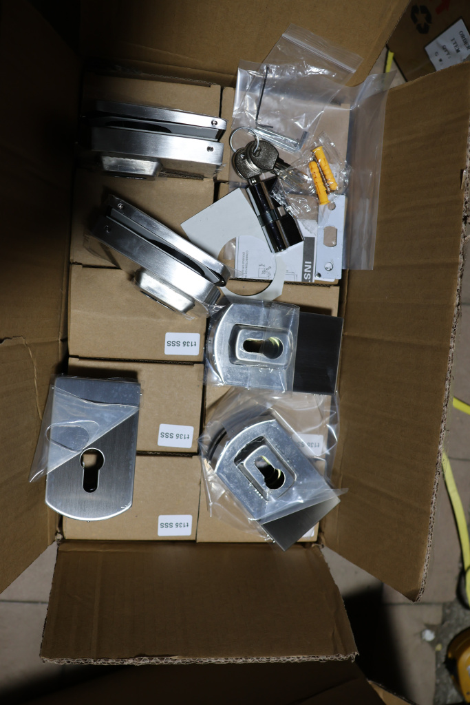 снимаем крышки замка, с помощью шестигранника раскручиваем замок на две части, фиксируем замок в заранее заготовленный вырез стекла. И обратно собираем- закручиваем замок и закрываем крышки