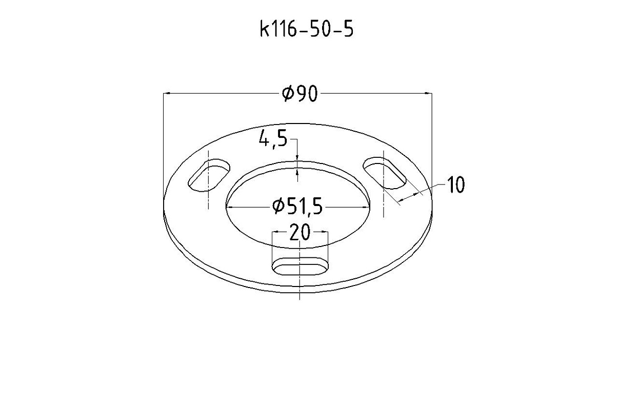 Фланец стойки 38/90х5 (4.3) х AISI 304 #200 3 отв. М10 х 20 k116-38-5