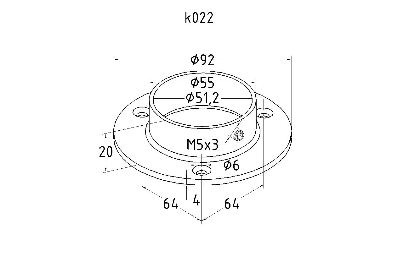 Фланец стойки 38/90 х 5 (4,3) х AISI 304 #200 3 отв х М10 х 20 k116-38-7