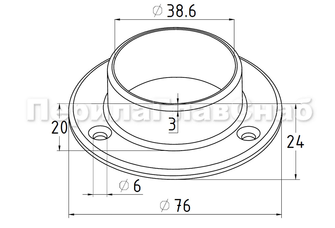Фланец штампованный, для трубы Ø38.1 мм, полированный, внешний диаметр Ø76 мм, толщина 2 мм (AISI 304) k533 купить в Перми
