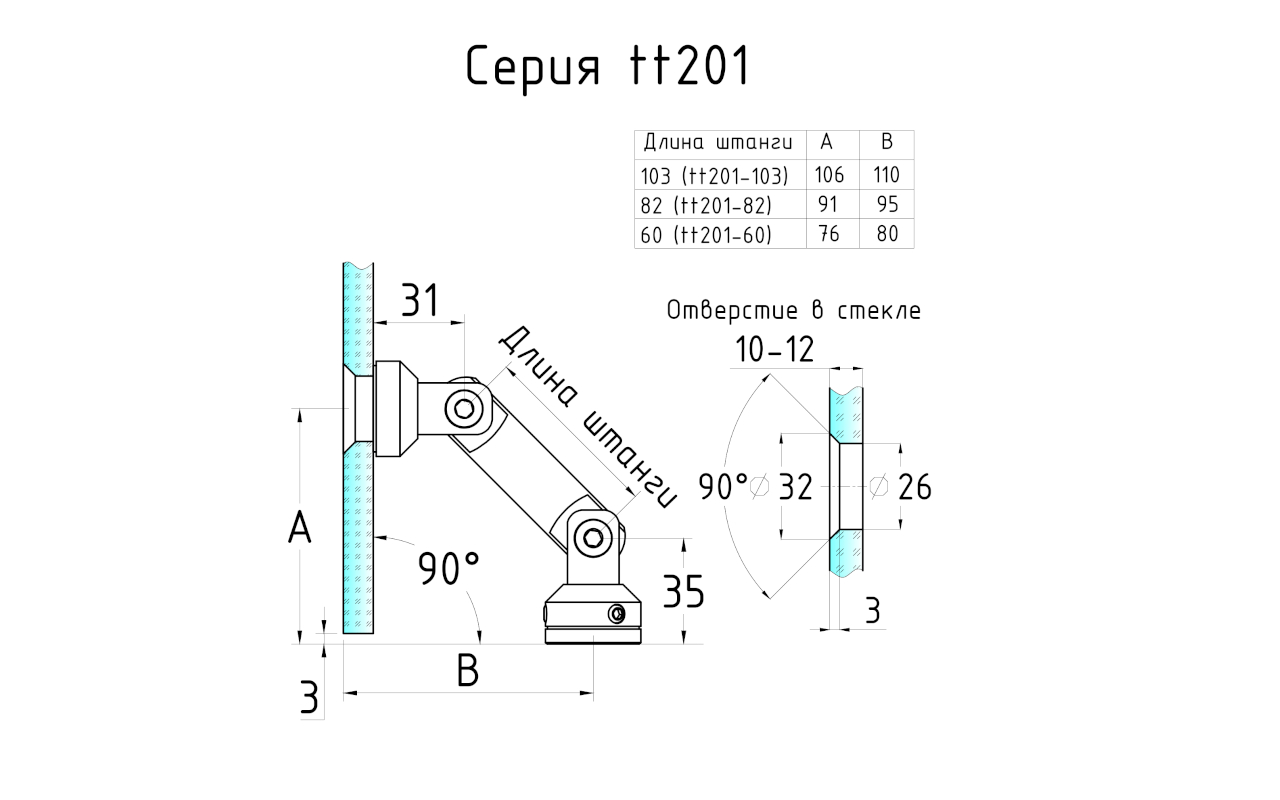 фиксация неподвижных стёкол к стене под произвольным углом.