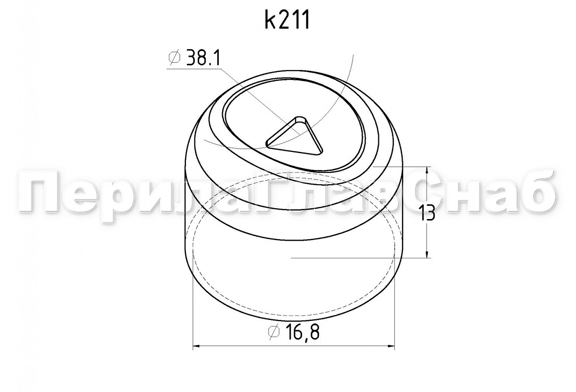 Наконечник штампованный (СПС) прямой 90° на трубу Ø16 мм, для поручня Ø38.1 мм, полированный, нержавеющий (AISI 304) k211