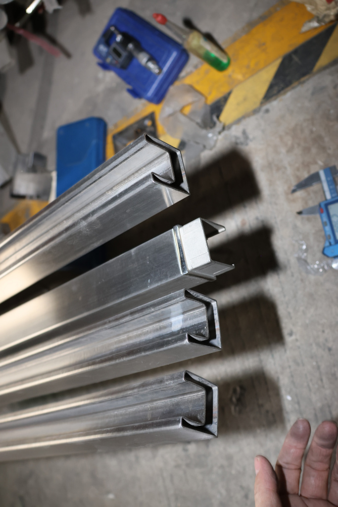 Труба 40х40 мм с пазом 24 х 24 под стекло, шлифованная, AISI201, k856-4