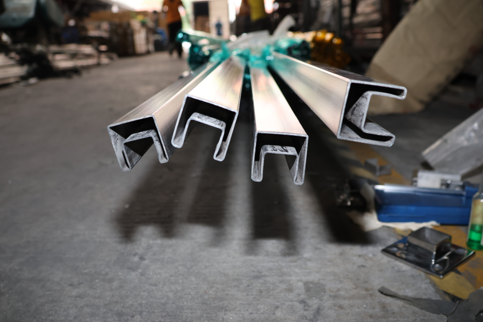 Труба 40х40 мм с пазом 24 х 24 под стекло, AISI201 #600 k856-3