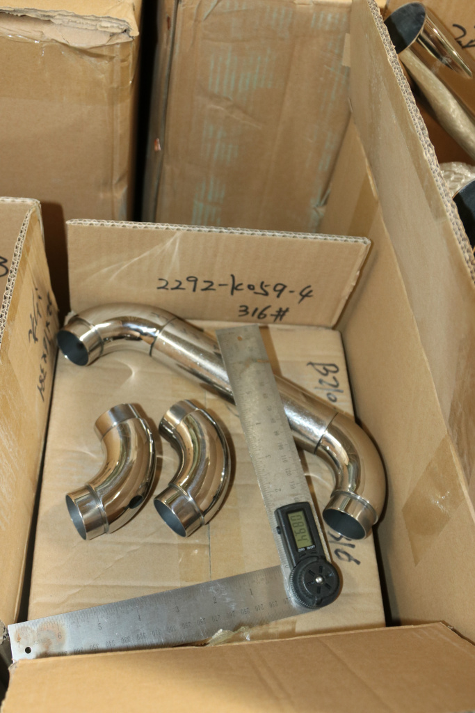 Отвод под поручень диаметром Ø38.1х110х1.5 мм, 90°. Деталь литая, полированная 600 Grit, с двумя установочными кольцами. Марка стали - AISI 316