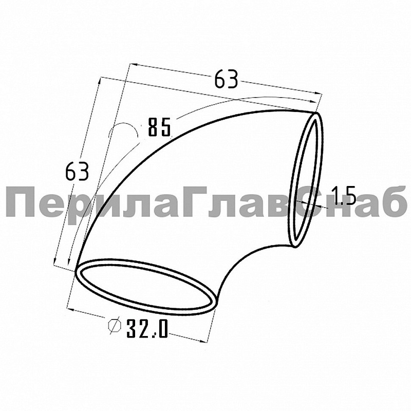 отвод поручня Ø32.0х85х1.45мм, 90°