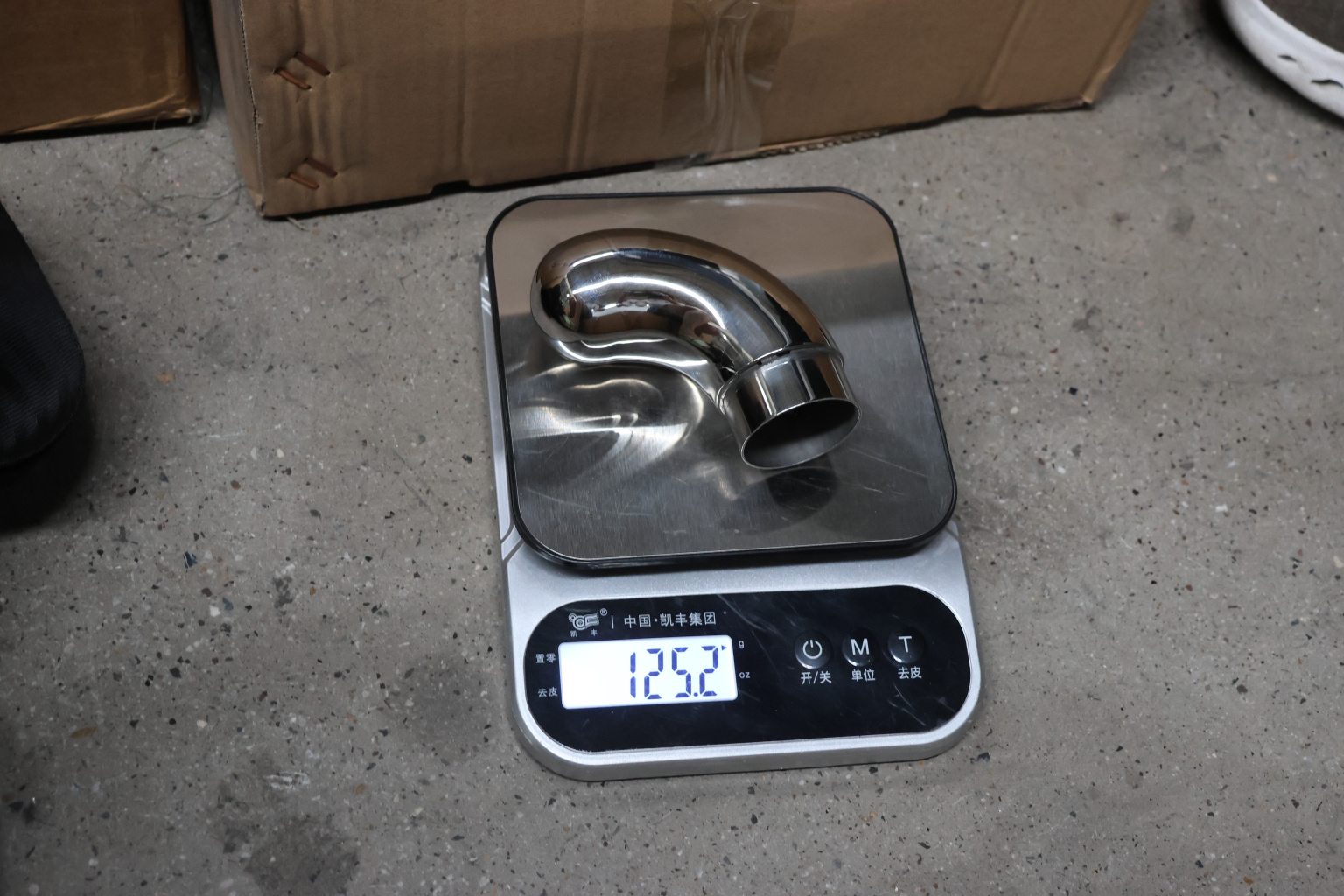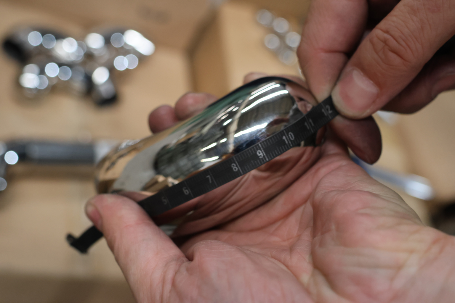 Отвод оконечный с круглой заглушкой под трубу Ø42.4. Деталь литая, полированная #600, марка стали - AISI 304