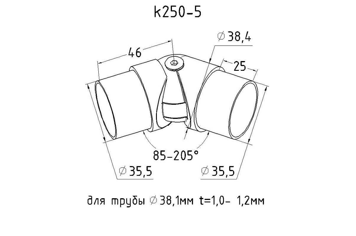 Поворот литой, внутренний, шарнирный, под Ø38.1мм, для трубы 1.00 - 1.2 мм (aisi 304) k250-5
