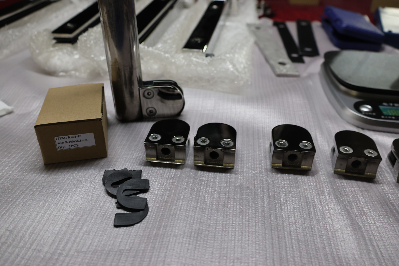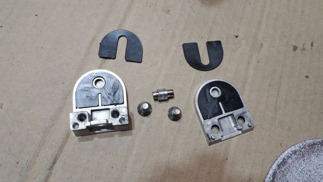 Стеклодержатель литой с вставками под стекло 8-10 мм, 4+4 мм, закругленный под стойку Ø38,1 мм (40х22х50), полированный, (AISI 304) k001-10