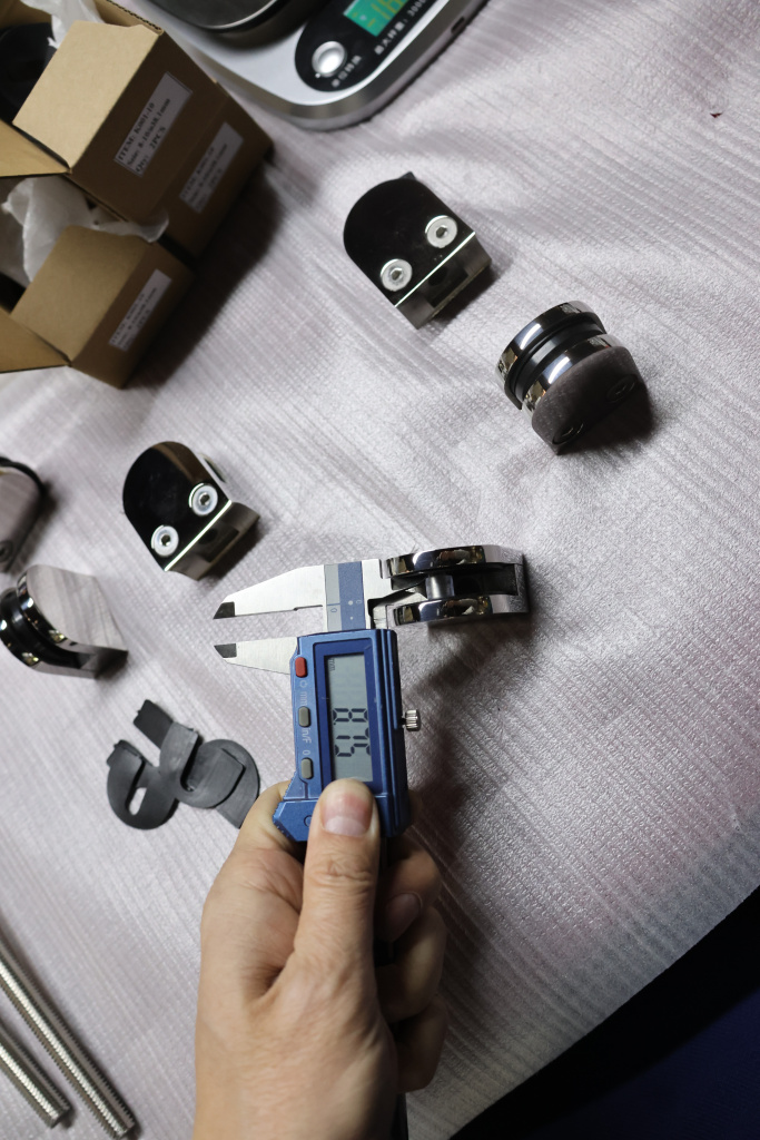 Стеклодержатель штампованный, под стекло 10 мм (5+5 мм), квадратный под стойку Ø38.1 мм (40х24х48 ) полированный AISI 304 k351-10