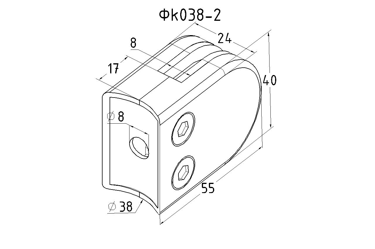 Стеклодержатель штампованный под стекло 8 мм (4+4 мм), под стойку Ø38.1 мм 40х24х54, шлифованный (AISI 304) Фk038-2