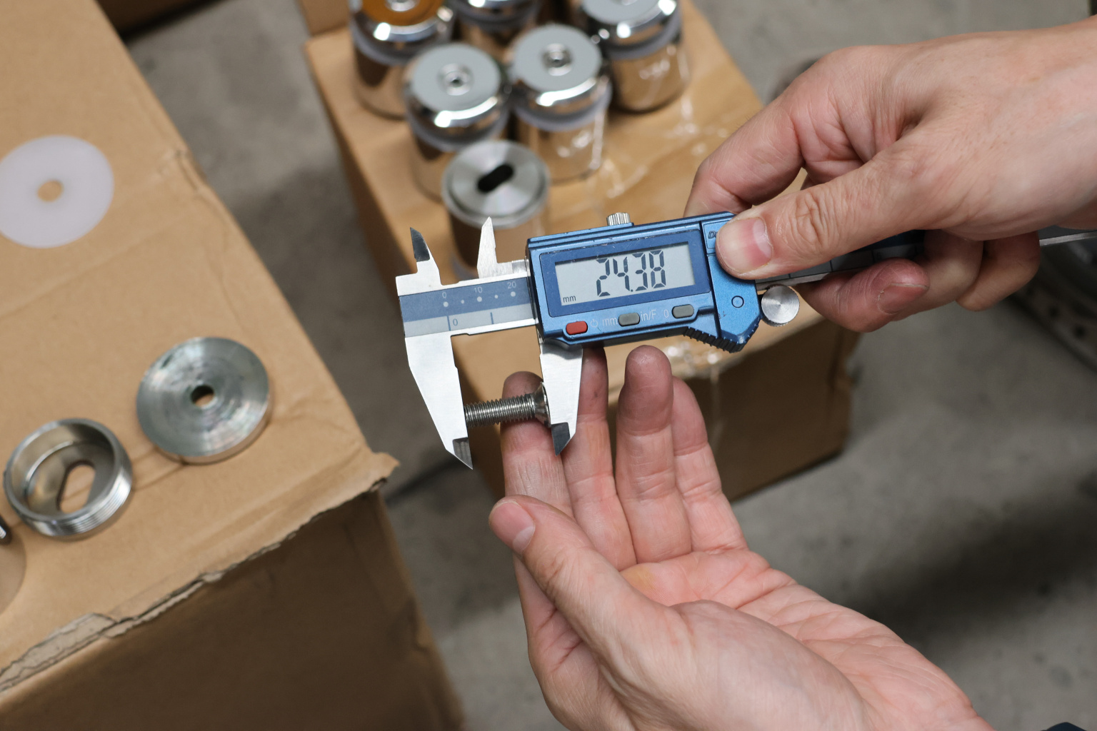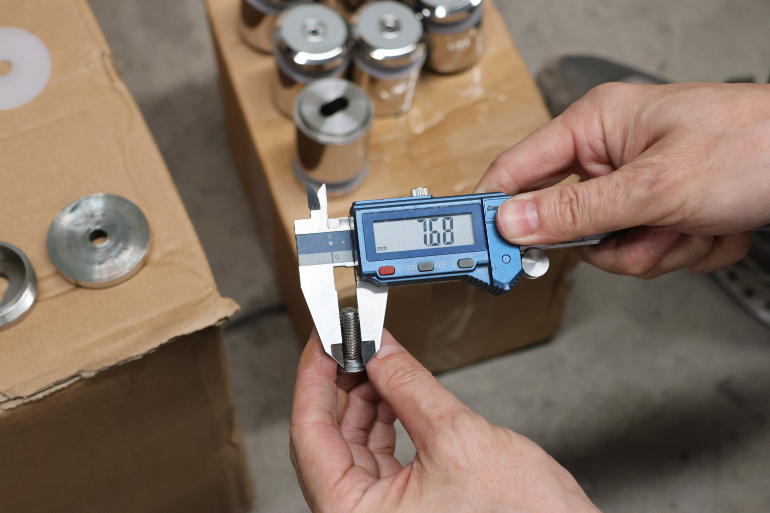 Комплект торцевого крепления несущего стекла, шпилька М16 AISI304, гайка-шайба Ø50х10мм, с регулировкой вылета 25-39мм, полированный, AISI 304 k277-11