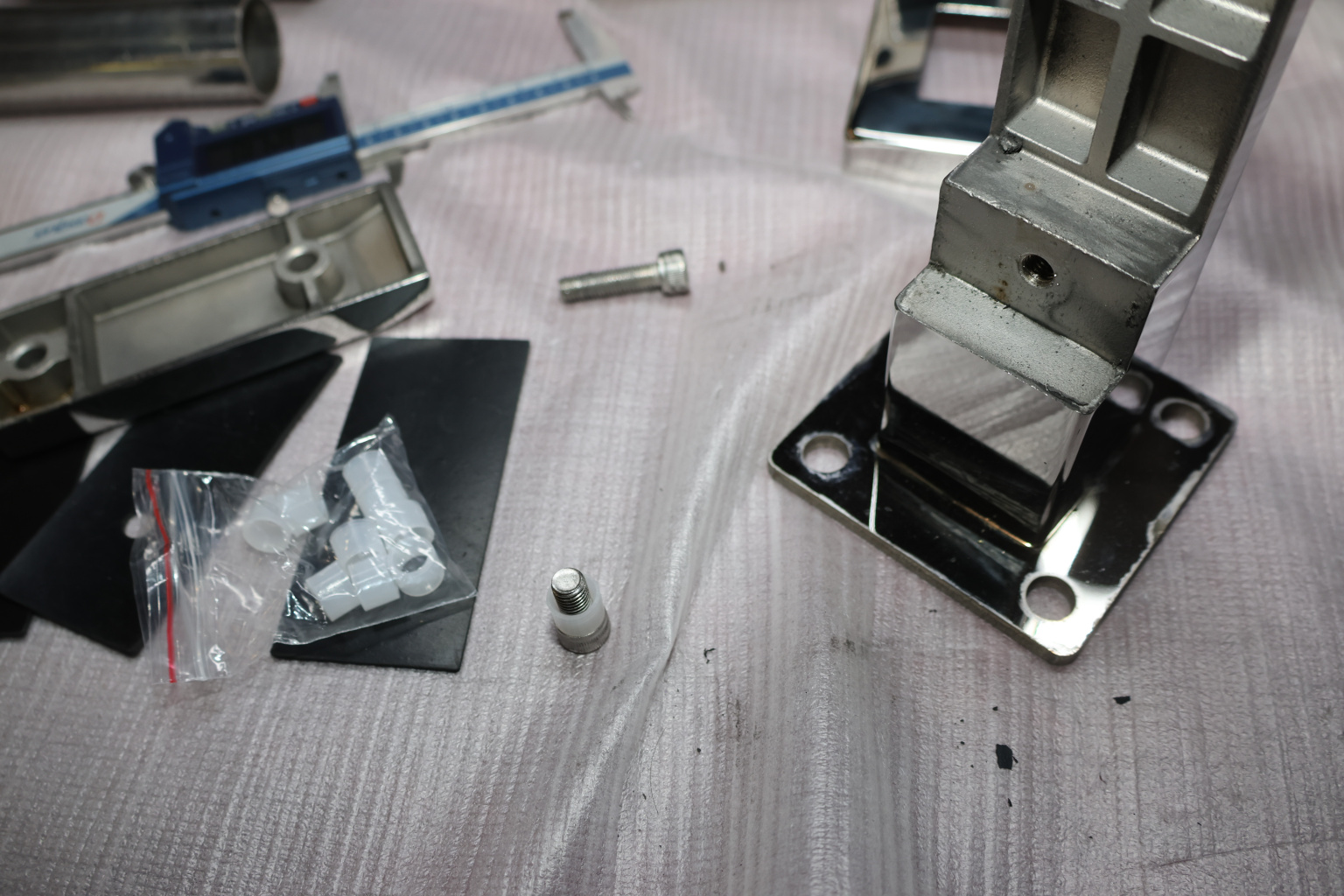 Стеклодержатель пластинчатый 3хМ8, по центрам 170х5 мм, полированный, шайбы 5 мм штамп., под стекло 6-12 мм, AISI 316 k023-8 купить в Перми