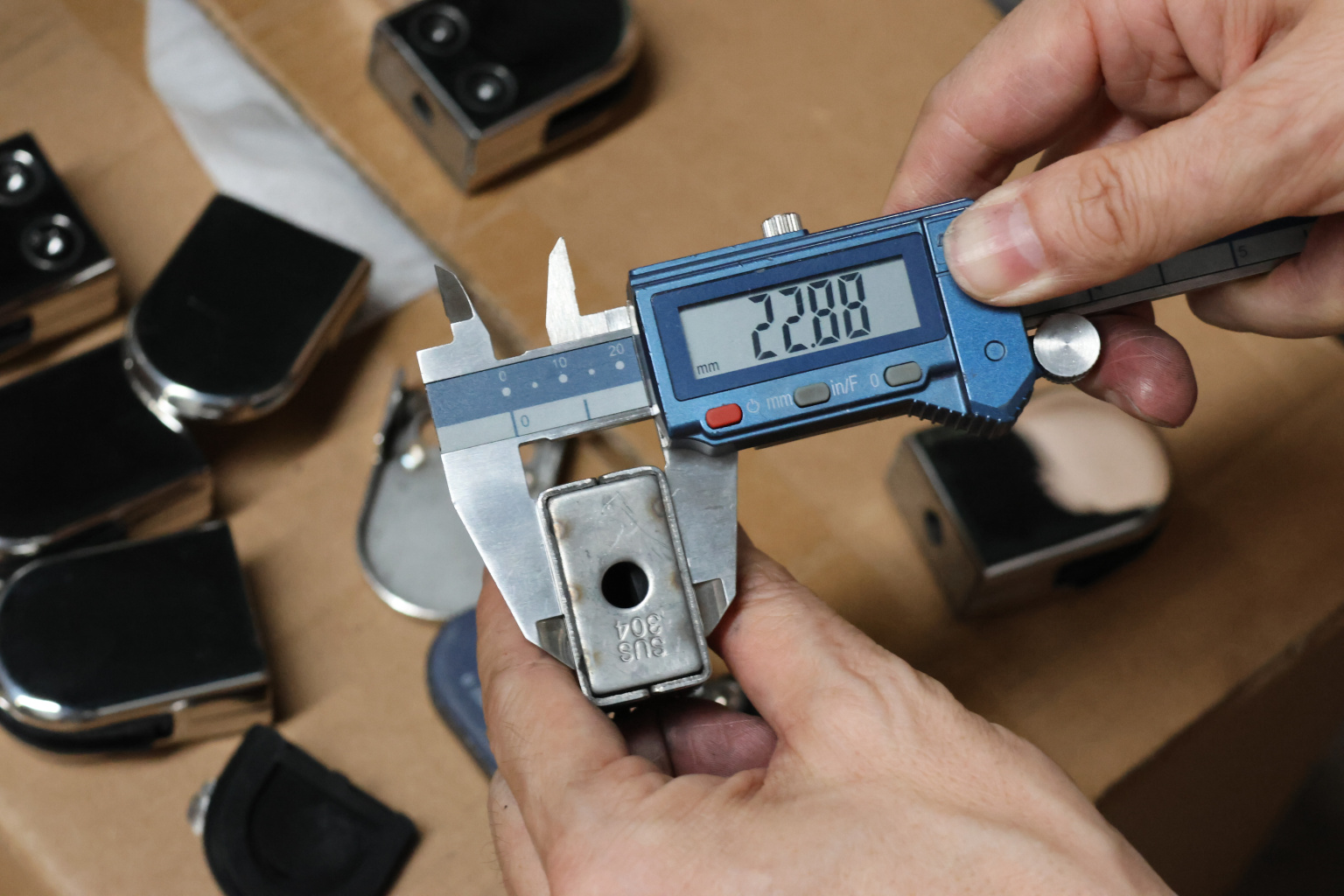 k039 стеклодержатель штампованный под стекло 8 мм? на плоскость 40х22х53 полированный. Марка стали AISI 304