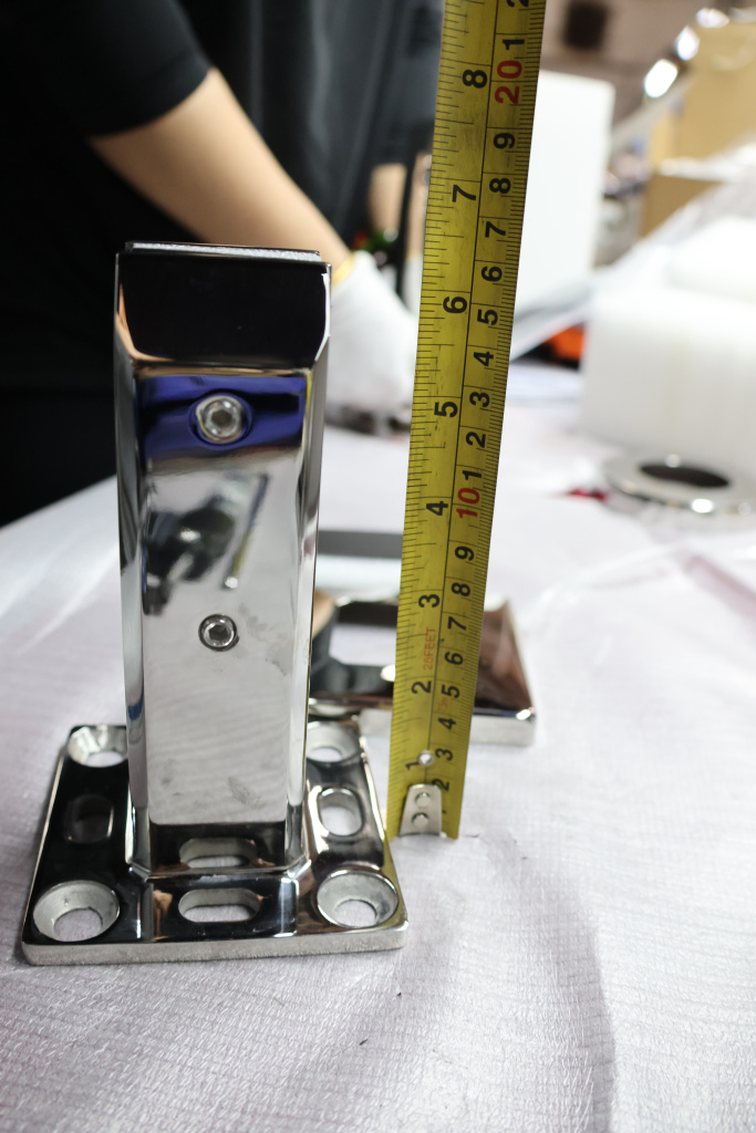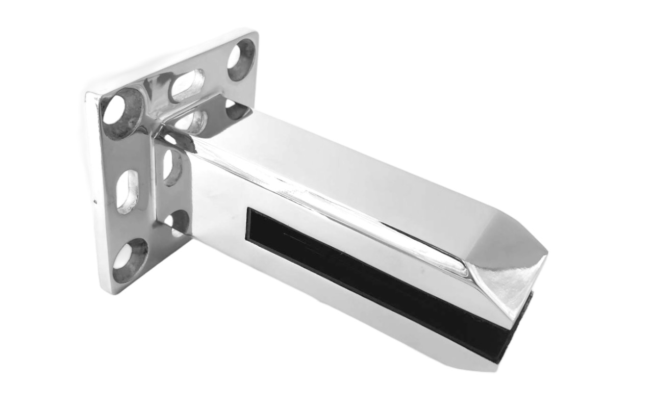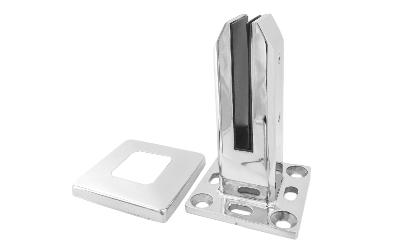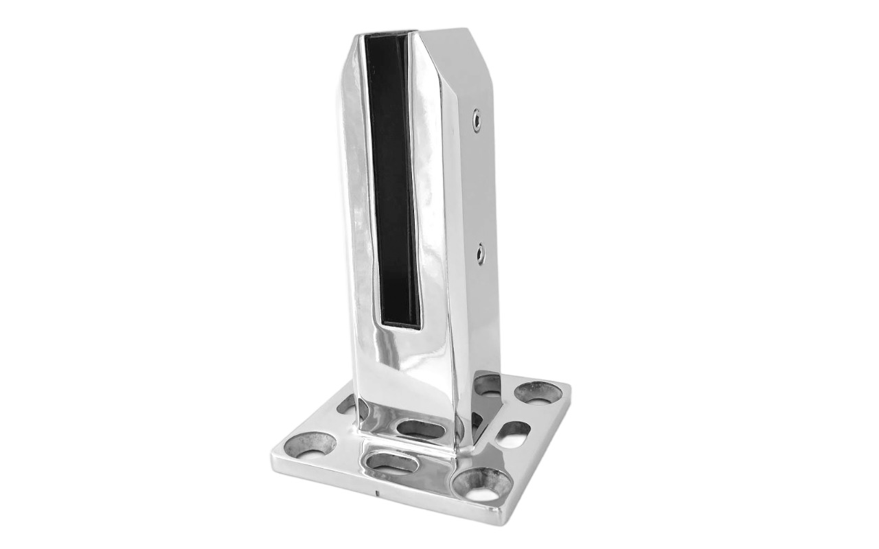 Стеклодержатель напольный, плоский 45х50х160 мм, для стекла 10 - 12 мм, полированный, без сверления стекла AISI 304 k282 купить в Перми