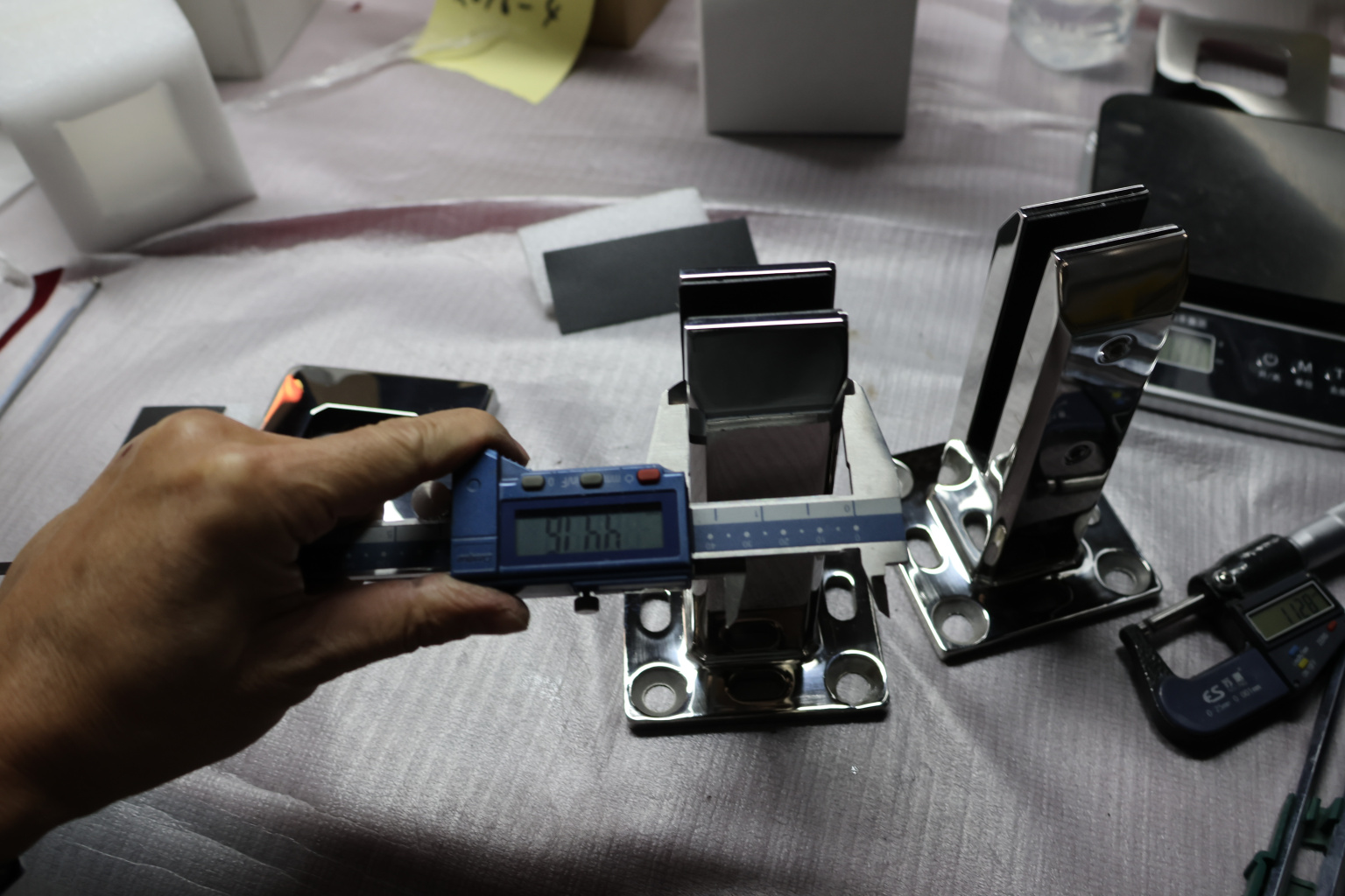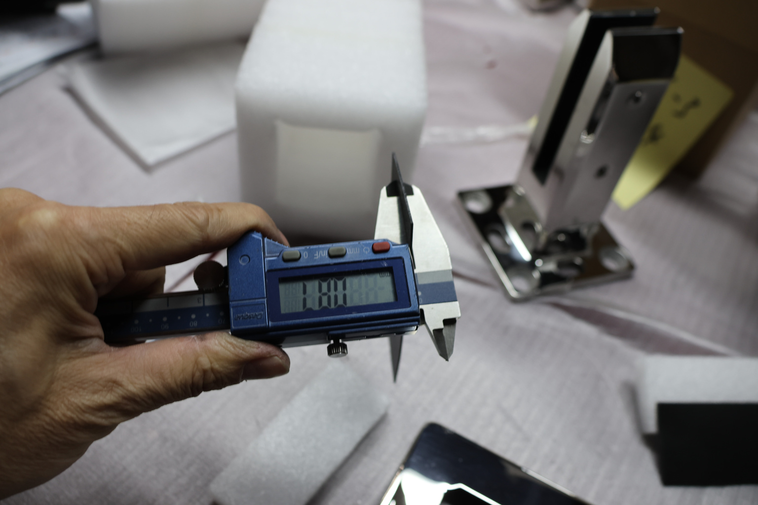 Стеклодержатель штампованный под стекло 10 мм (5+5 мм), под стойку Ø38.1 мм (39х24х55), полированный (AISI 304) k538-10
