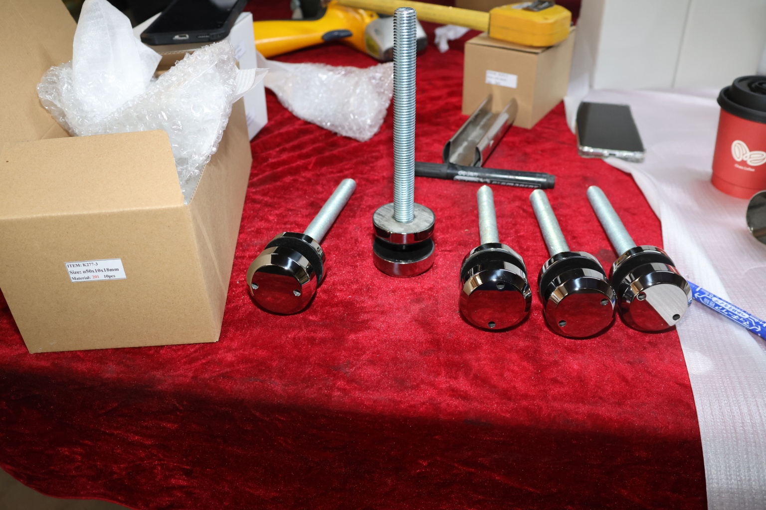 Комплект торцевого крепления несущего стекла, шпилька М16 AISI304, гайка-шайба Ø50х10мм, с регулировкой вылета 25-39мм, полированный, AISI 304 k277-11 купить в Перми