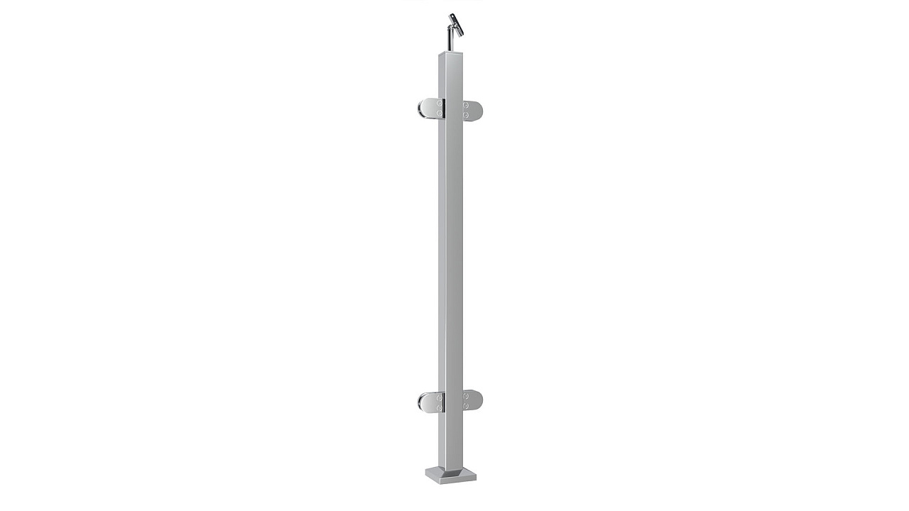 Стойка квадратная 40х40: 2 пластинчатых стеклодержателя, полированная, высота 950 мм (AISI 304) k749