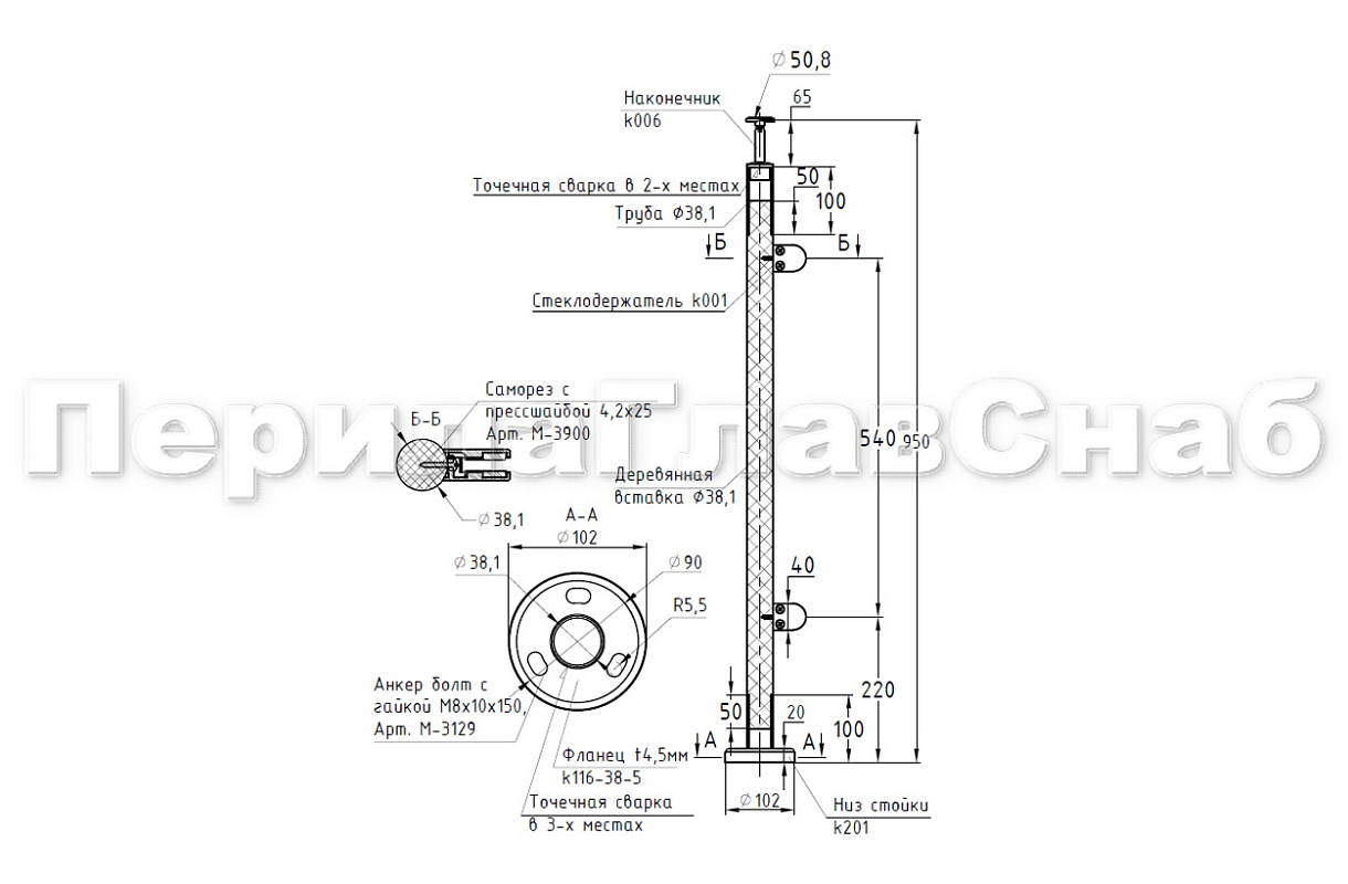 Готовые стойки – это экономия Вашего времени и денег. Приобретая готовую стойку Вы можете собрать ограждение сами, не привлекая монтажную бригаду и экономя денежные средства на монтаже. Стойка легко монтируется к полу благодаря треханкернуму фланцу с отверстиями под анкер-болт М8 ( , , ) или шпильку ( ; ) комплекте с хим анкером Ф-0799 или Ф-0800, а крепеж скрывает декоративная крышка идущая в комплекте стойки. Поручень из нержавеющей стали можно закрепить при помощи самореза ( , , ), либо при помощи заклепки ( ) и винта М6 ( М-3973) что на порядок эффективней, для крепления при помощи заклепок необходимо растачивать отверстие в ложементе. Если вы используете пластиковый ( , , , , , , ) или деревянный поручень, то его можно закрепить при помощи саморезов ( , М-3850, ). После покраски дубовой проставки подклеиваете клеем ( Ф-1127, Ф-1105). Стекло заказывается после установки стоек и снятия размеров. После того, как стекло готово к установке, при помощи шестигранника ( , ) разъединяете стеклодержатель, надеваете стекло и закручиваете обратно. Ограждение готово!