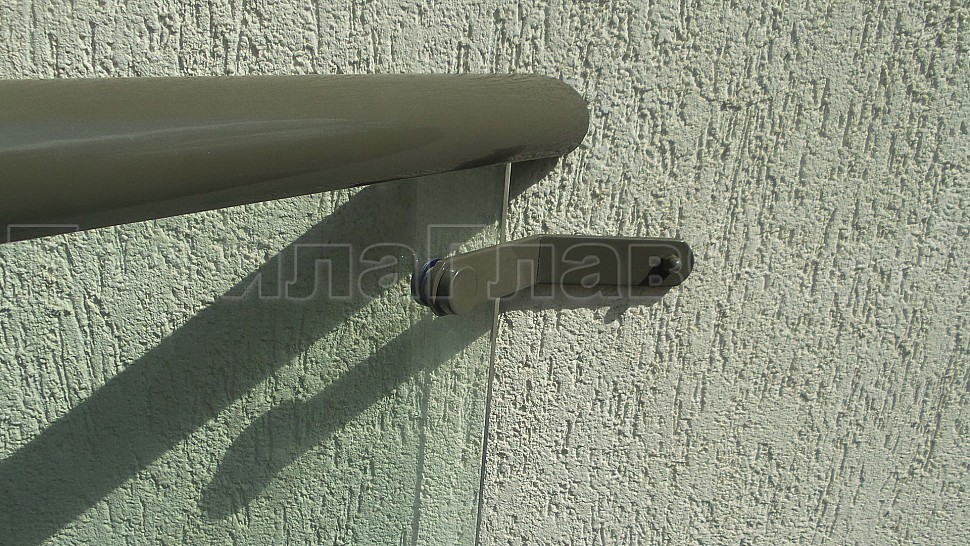 На данном объекте было установлено балконное ограждение высотой 950 мм с каленым прозрачным стеклом 10мм и с поручнем диаметром 50 мм из полированной нержавеющей стали AISI304, окрашенным по цвету анодировки профиля с креплением на стекло через паз. Стекло крепится на алюминиевый зажимной профиль, анодированный в цвет B32 Е6. Поручень завязан на поворотах, окончание фланец с креплением в стену. Крепление нержавеющих элементов ограждения между собой точечная аргонно-дуговая сварка, длина швов 2мм, с последующей зачисткой и полировкой, которые не имеют и намека на коррозию или прочие повреждения.