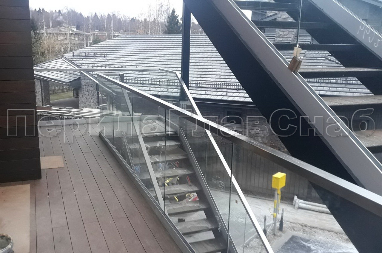 Нашей компанией «Перилаглавснаб» были выполнены работы по установке Цельностеклянных ограждений в частном доме, находящемся в коттеджном поселке «Мэдисон Парк».
