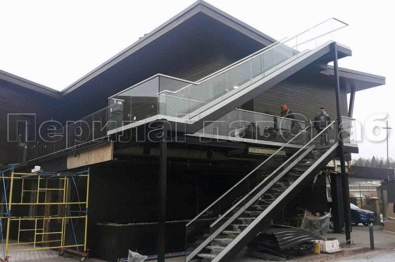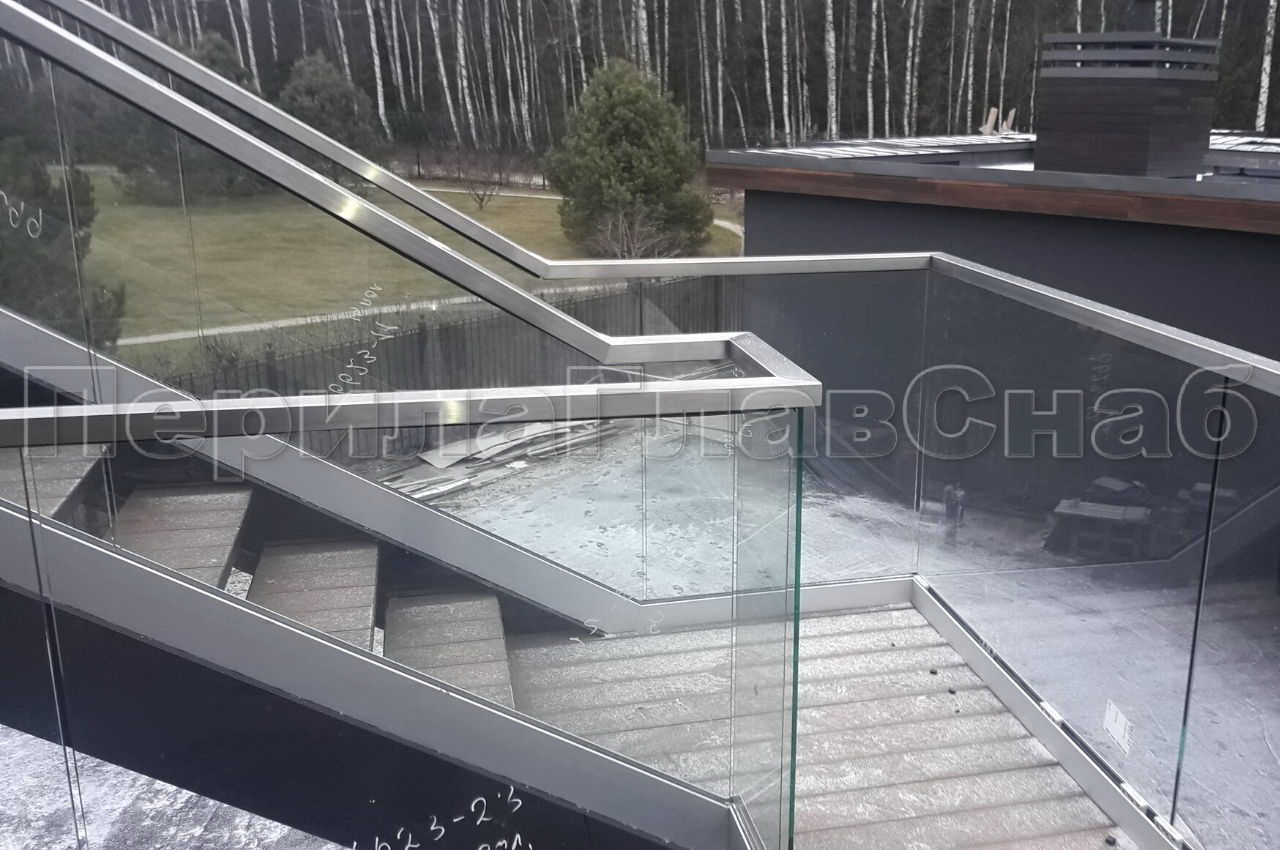 Основными критериями выбора ограждений от заказчика были следующие пожелания: Ограждения должны соответствовать требованиям безопасности и в то же время конструкция должна быть визуально лёгкой и прозрачной. Нами было предложено Цельностеклянное ограждение, которое состояло из следующего конструктива: Алюминиевый анодированный профиль собственного производства, который был разработан нашим конструкторским отделом, так же профиль прошел испытания на нагрузки и был сертифицирован. Закаленное стекло толщиной 10мм с евро кромкой и для придания жесткости конструкции сверху на стекло через уплотнительную резинку был установлен поручень с пазом на стекло из шлифованной нержавеющей стали. При монтаже использовались различные технологии крепления профиля к основанию так как оно отличалось друг от друга.  На одном участке основанием был кирпич на втором металлический швеллер, на третьем участке основание состояло из так называемого «Пирога»: бетон, утеплитель, на утеплитель уложена гидроизоляционная мембрана.  Для того чтобы установить профиль в «Пирог» нашим инженером- конструктором был разработан узел крепления профиля. Благодаря конструкторскому решению, мы установили профиль на данном участке без потери жесткости конструкции и сохранили гидроизоляционные свойства мембраны. Работы по изготовлению и монтажу ограждений под ключ, были выполнены в течении тридцати рабочих дней.