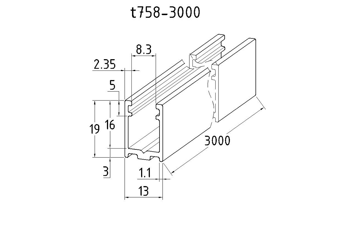 П-образный профиль 19x13, L=3000, под стекло 8 мм, черный матовый t758-3000 BL