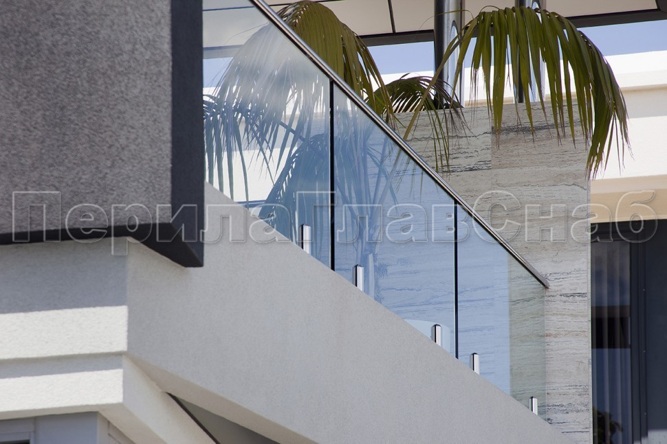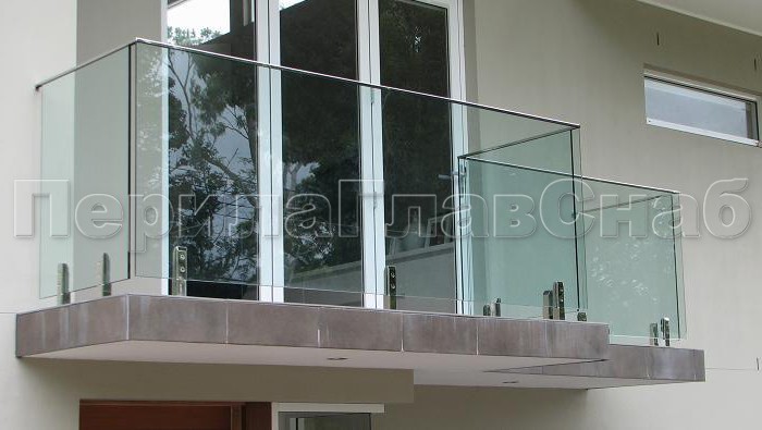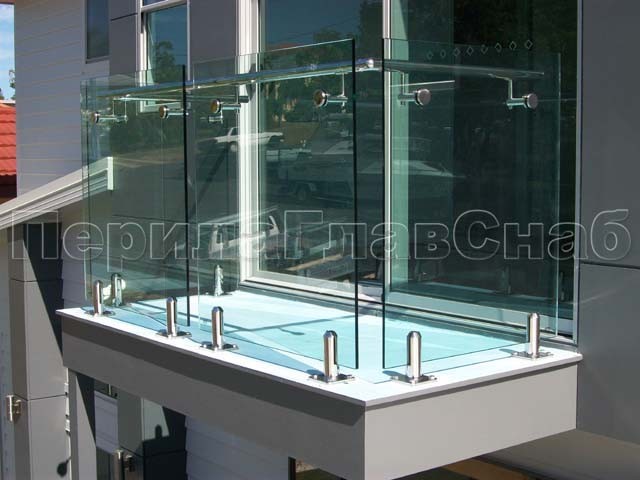 Цельностеклянные перила для балконов и лоджий с креплением на министойки.