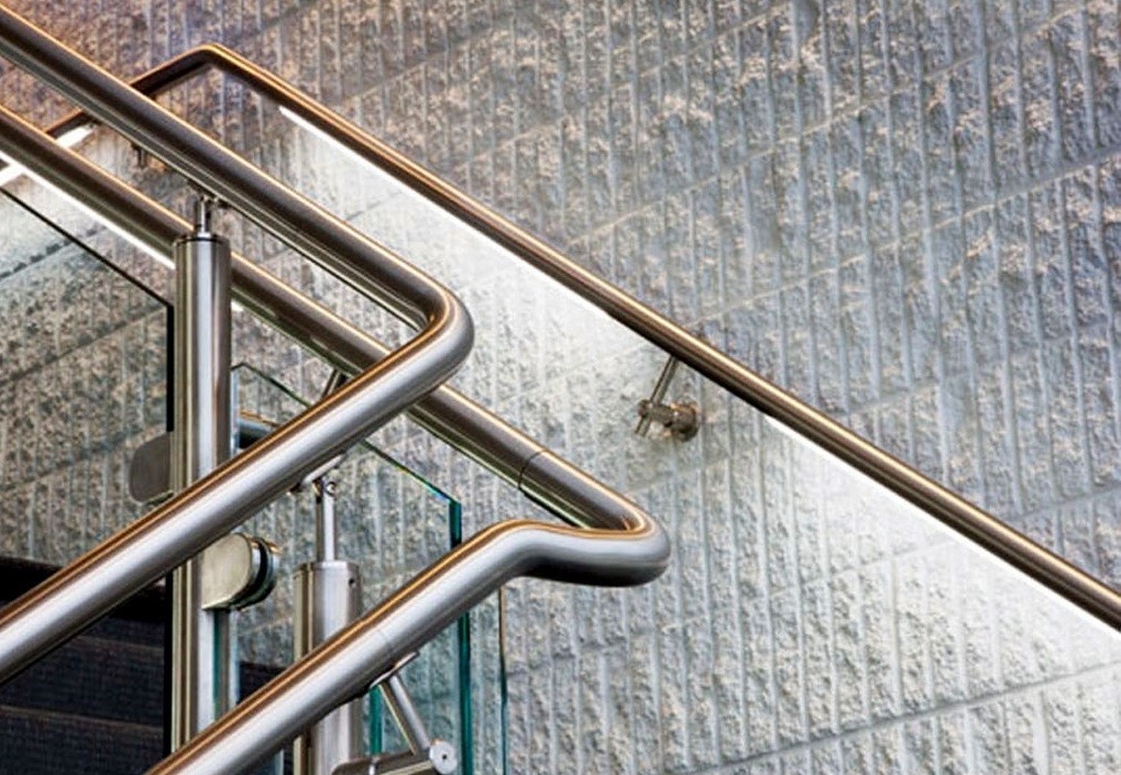 Металлические варианты или ограждения из закаленного стекла достойны внимания, если интерьер выдержан в стиле «хайтек» или тенденциях минимализма. Особый шик — снабдить их светодиодной подсветкой.