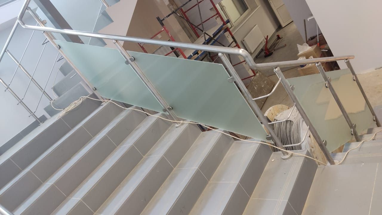 Сквозные варианты работают иначе: стекло крепится через отверстия в полотне. Такой точечный стеклодержатель часто выбирают для лестничных ограждений, фасадов и решений, где важны минимализм и визуальная «парящая» подача. Конструкция выглядит легче, но требует очень точных расчётов и грамотной подготовки стекла.