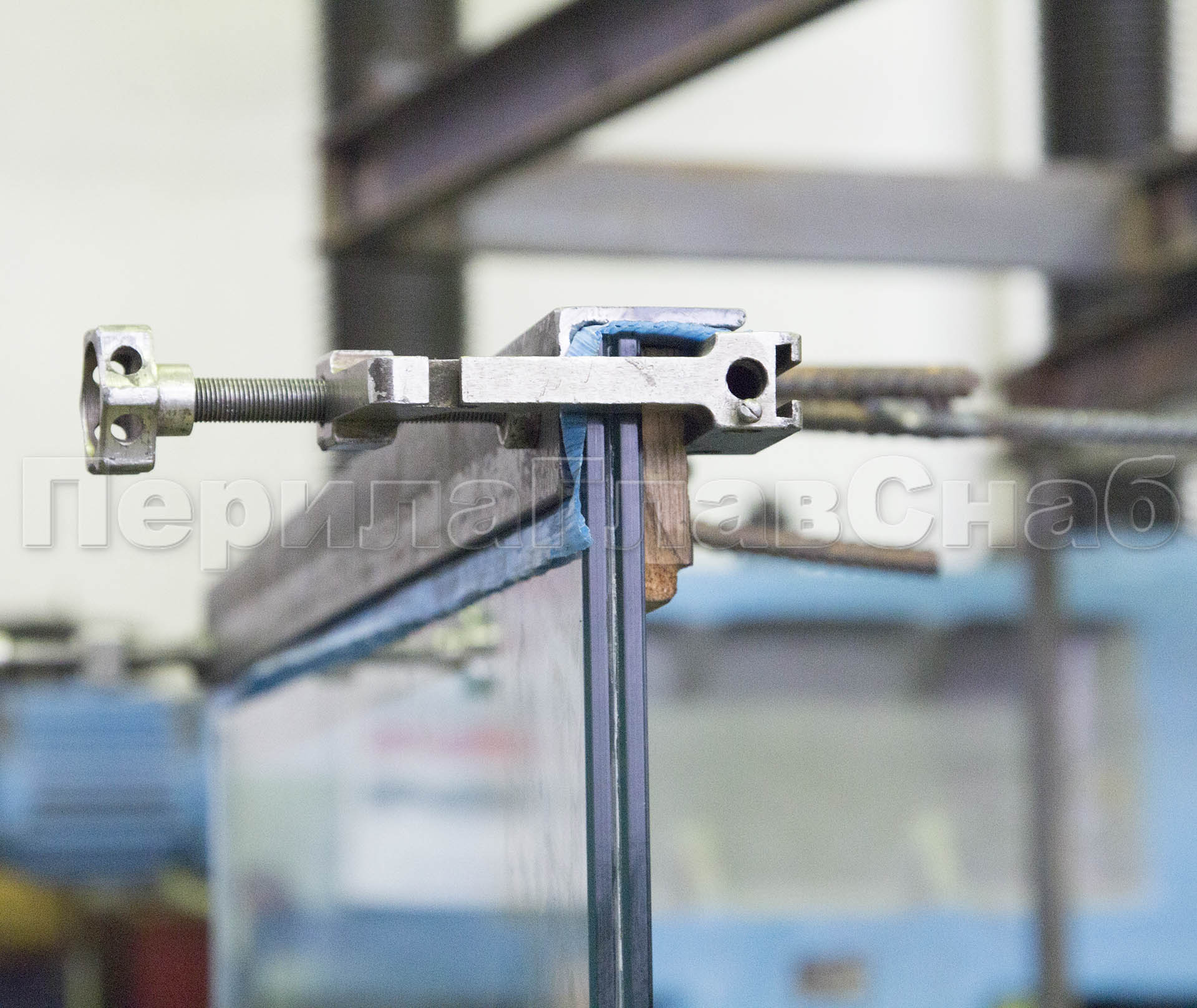 Стекло триплекс - 1000 х 1000 мм. Алюминиевый зажимной профиль k601-2 длинной - 1000 мм. Профиль крепится к стенду через отверстия ( шаг 300 мм) болтами М12 в нижней плоскости профиля. Профиль устанавливался на усиленный швеллер N20.
