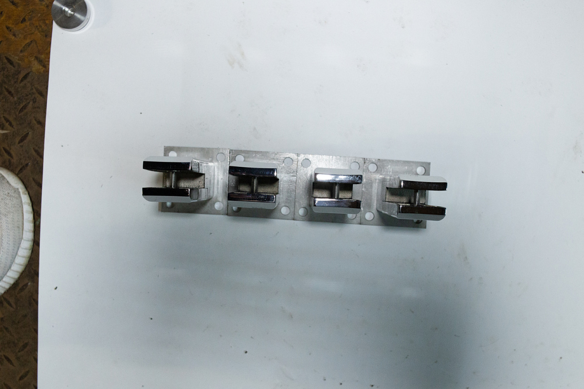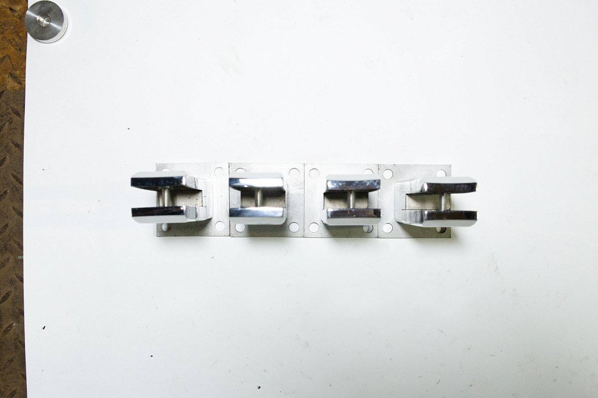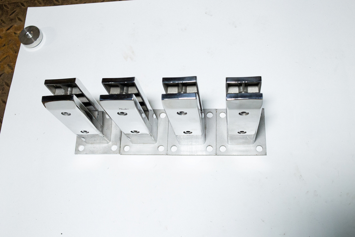 Стеклодержатель литой напольный, плоский 50х50х190 мм, для стекла 10-12 мм, полированный AISI 304, уценненый.